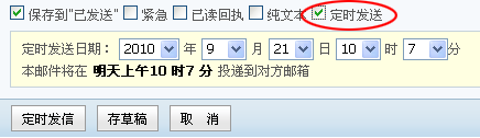 3) 如果想要取消发送,可以直接点击此菜单上“存草稿”按钮,邮件将取消定时发送请求并保存为草稿。或者您直接发送和删除邮件。